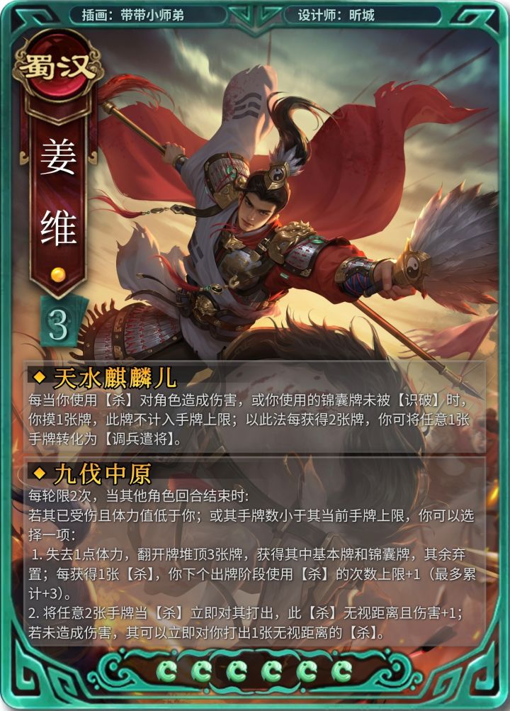 本设计最精妙之处,在于把姜维“文武双全、伺机而动、以攻代守、九伐不息”的军事特质,完全融入机制逻辑,而非单纯贴标签。