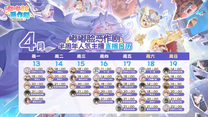 《嘟嘟脸恶作剧》半周年直接把氛围拉满!直播日历第三弹正式曝光,玩家们瞬间沸腾,全网都在蹲自家喜欢的UP主!