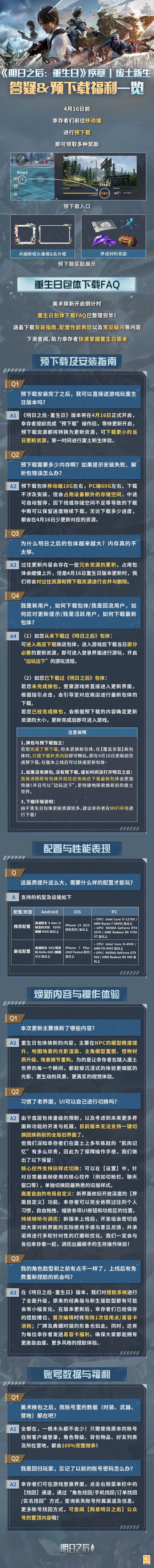为了保障大家在新版本上线时能够第一时间顺利重返废土,明明与开发组为大家特别整理了一份详细的答疑指南。