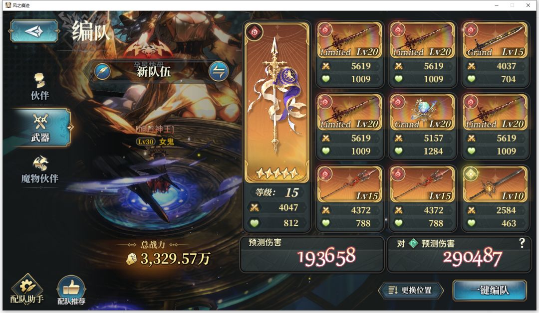 取三个角色 魔剑主 捏布拉 断裁偶 (第四个可以根据环境换人)