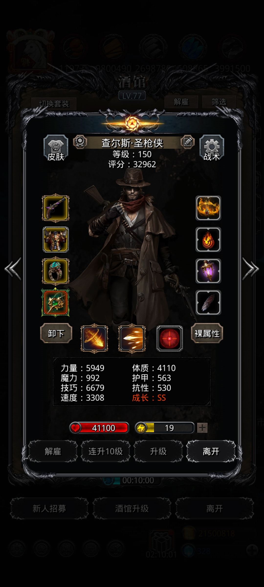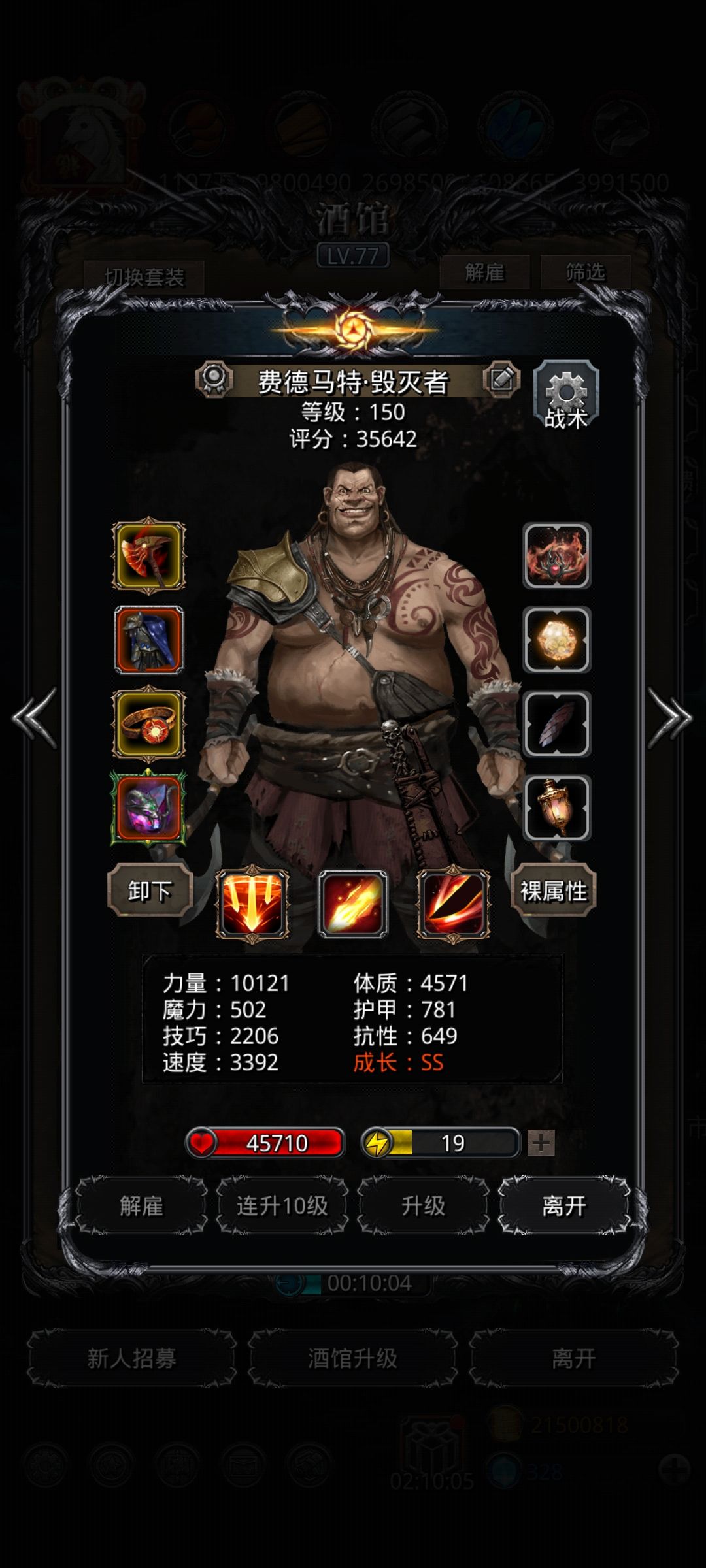 从图41开始真是刷得够够的:进化先驱风暴,械灵母体,小白龙,白金龙,冰龙,西比拉,一个个把脸刷破,虐得想吐,不知道后面是不是还有这些变态的数值怪。还是蛮子给力,坚挺的站到最后砍出决胜一刀,灭掉这变态的西比拉女妖!双圣枪双单吸,没有氪金技吸和物伤吸,只有野生力吸。剑魔纯物伤,没有单吸,毁灭纯力先发,这套配装都不用补命中,全都有95以上的命中。不过还是得刷脸老妖婆多单攻!