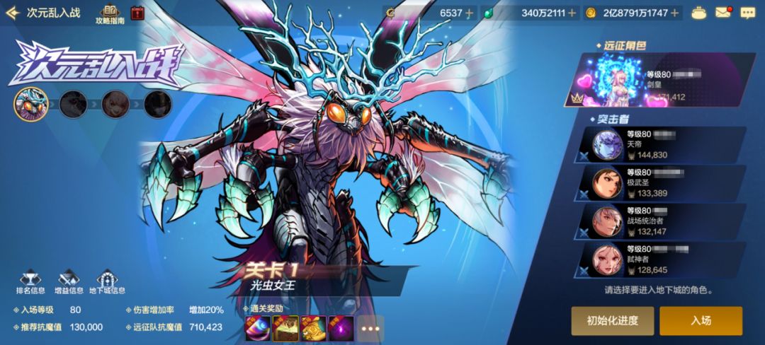 虽然可以单一角色直接进入副本(仅设置远征角色),但是想要更高的奖励,我们就需要挑战更高难度的副本(最高难度为“困难”,推荐抗魔值为17万)。
