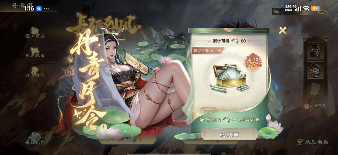丹青卷没有,,,我这种氪了每月每周的,只能黄金硬拉了,,,