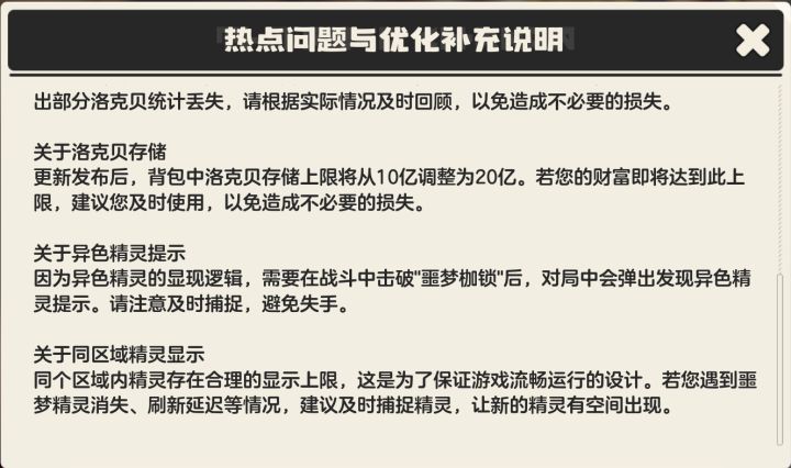 亲爱的小洛克: 关于近期大家关注的热点问题与优化更新,我们特此补充说明,希望能帮助大家更好地享受冒险之旅:
