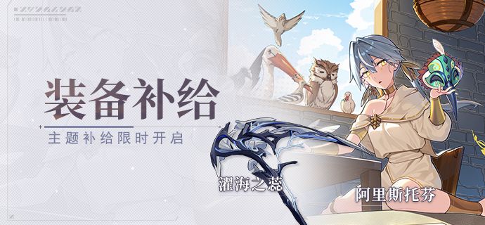 装备补给限时开启,「死生之律者」的推荐搭配:神之键「濯海之蕊」与谐谑奇锋圣痕套装「阿里斯托芬」获取概率提升!