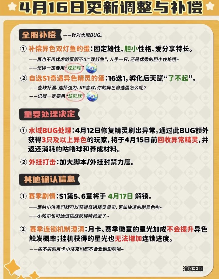 洛克王国4.16版本更新速览:异色补偿+抓宠