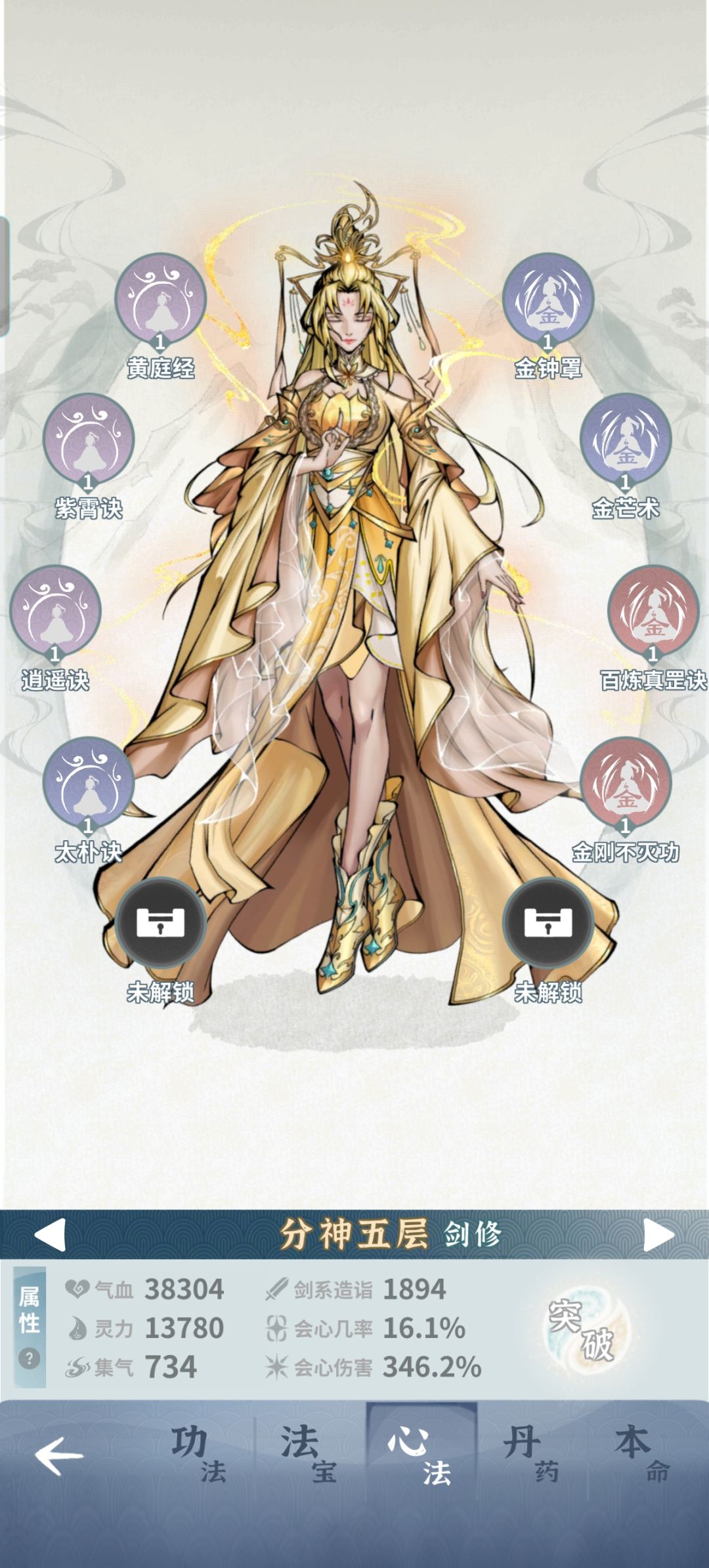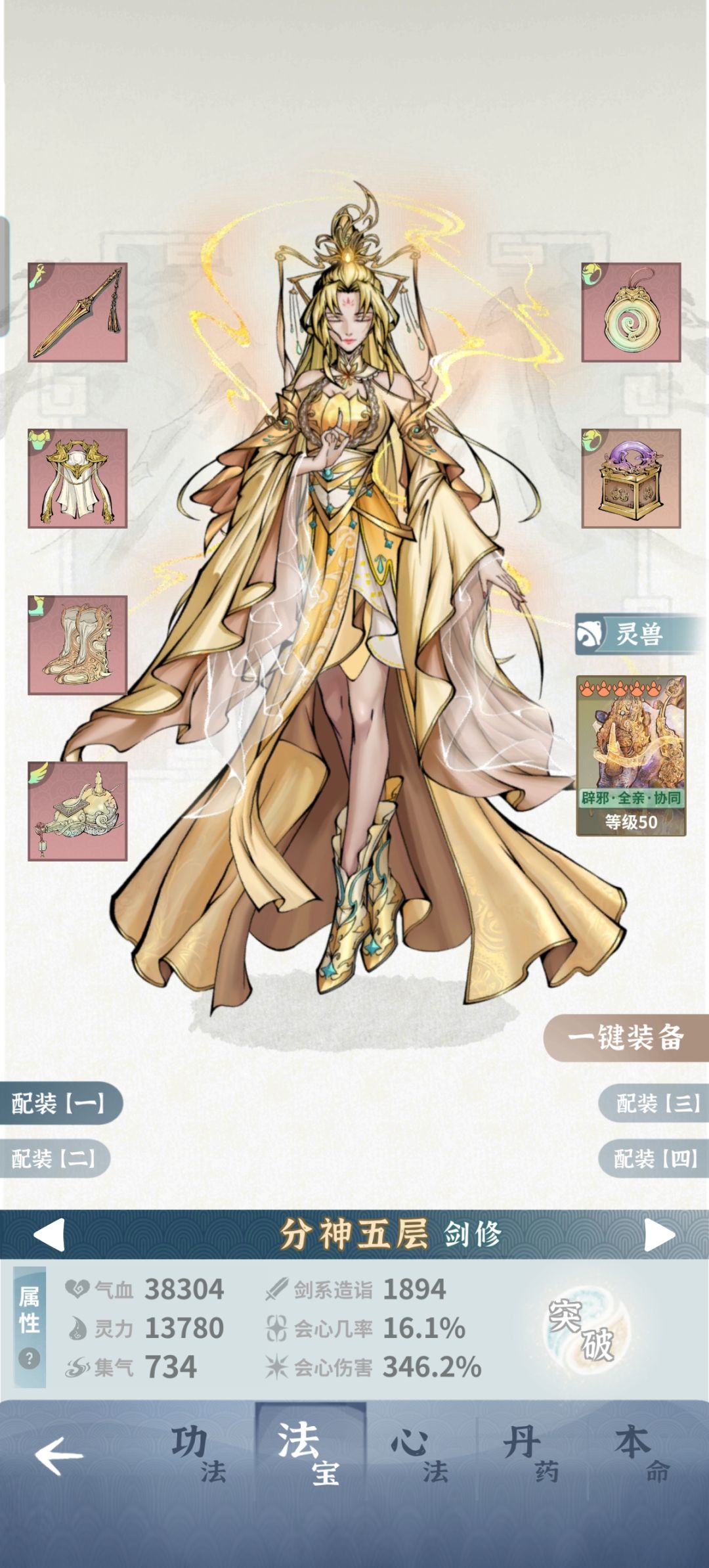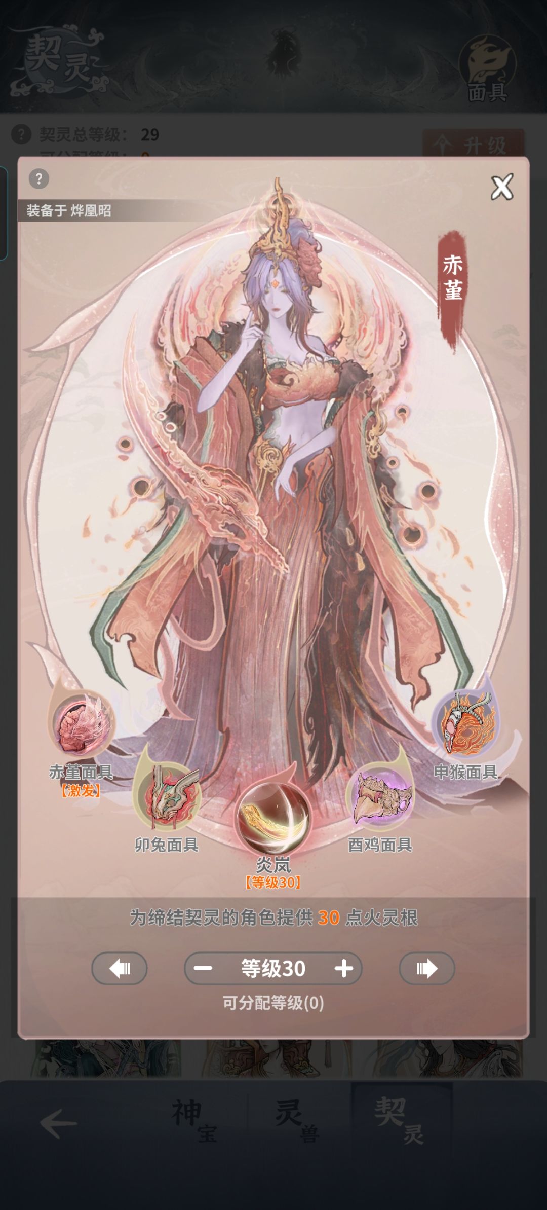 目前主线结束,火剑渡劫圆满,精炼9,契灵还没满级,丹药缺口较大,神女刚养第二天。