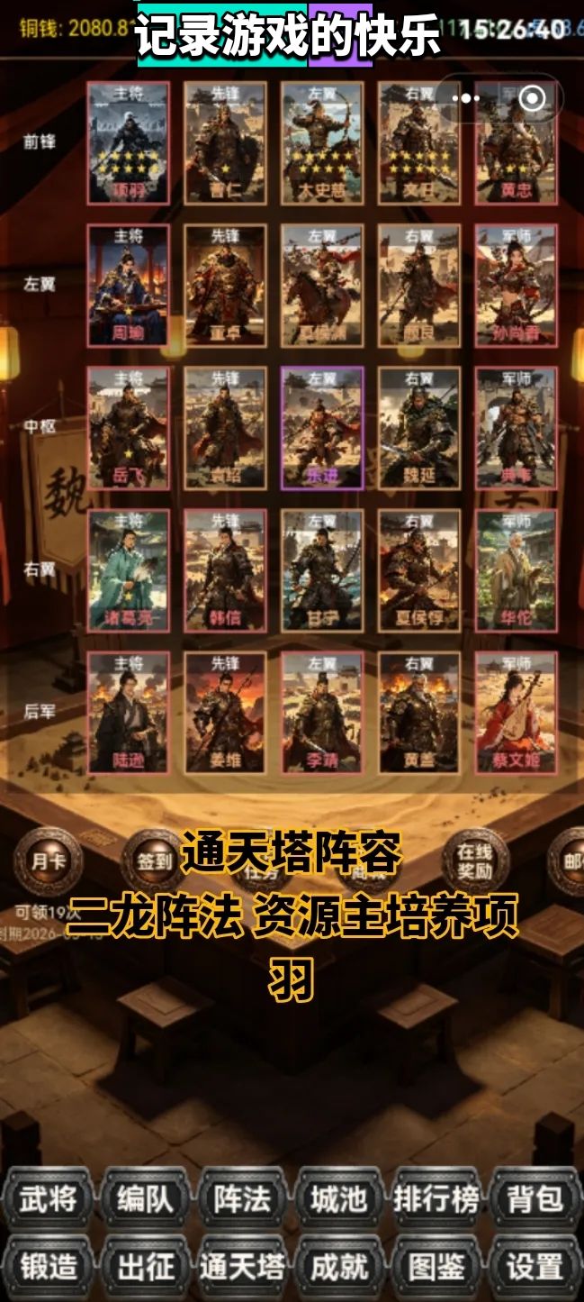 开荒一队项羽上主将位 其余蓝将输出放主将 其余放军师 然后开始挂机抓将 这游戏核心玩法主将跟军师可以放技能 以智力跟阵法提高释放成功率