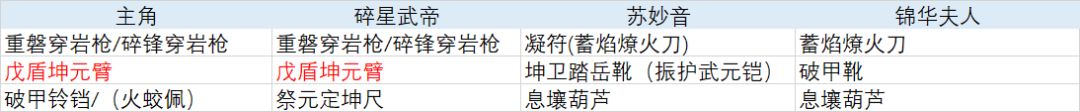 装备方面只有2个戊盾坤元臂是刚需,给主角和碎星武帝用。