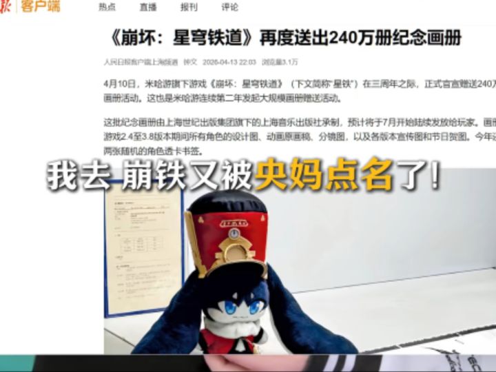 崩铁又被央妈点名表扬!数十家官媒报道!