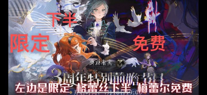 最左边的新角色应该就是周年限定了 鸽子的元素特别多再加上是在学院里 结合之前小时候的回忆 感觉新限定可能是个以前出现过的角色