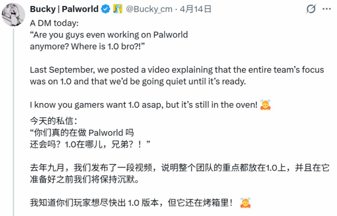 急哭玩家!《幻兽帕鲁》1.0仍无确切消息,开发组直言时候未到