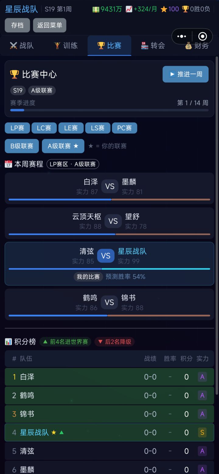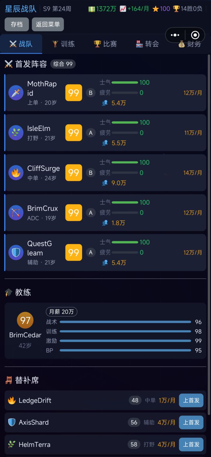 这游戏还是挺简单的,基本策略就是S1摸索,S2冲A级联赛,S3就能拿世界赛冠军了,后面基本都是碾压。