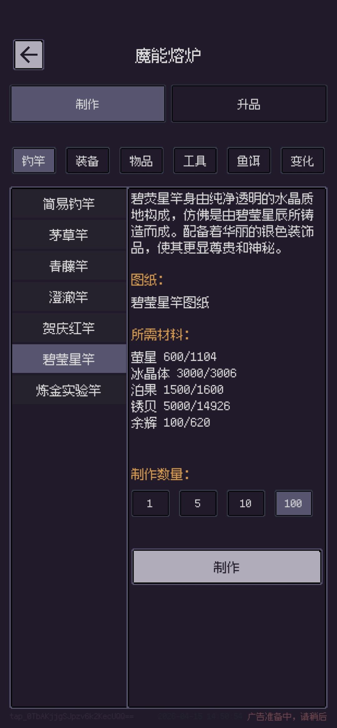 3.碧萤星竿制作价格高(果真高吗🤔),几种材料都要在特定位置获取而钓上来的根本不够,个人建议直接去深海彷湾买(进入需要消耗海螺号所以多准备余晖一次买好需要的数量)