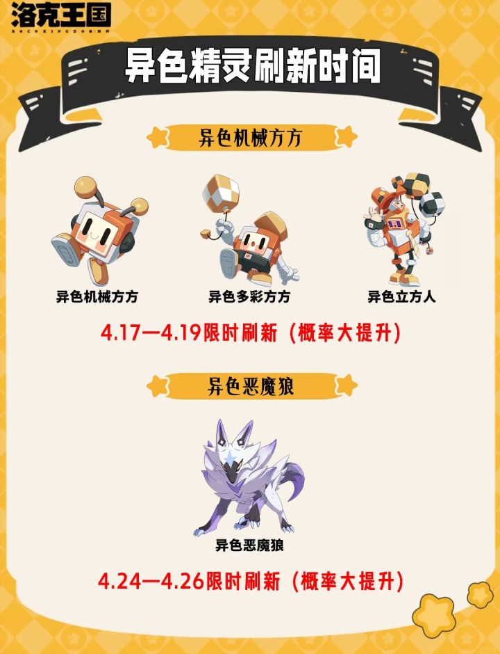 还在为刷不到异色精灵发愁?官方“大量出没”活动时间表终于敲定!限时刷新期间,特定精灵出现率飙升,是拿下异色款的最佳时机。本赛季结束后,这些限定异色将绝版,收集党务必码住!