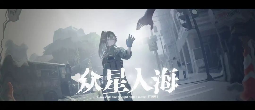 《众星入海》讲述了刚毕业、正在为工作奔波的普通青年“时寻”,意外遇见自称来自末日时代的少女“陈枫实”的故事。两人眼中的世界截然不同:一边是正常运转的现代都市,另一边却是满目疮痍的废墟末世,设定上还挺反差的(真的幻视某游戏)