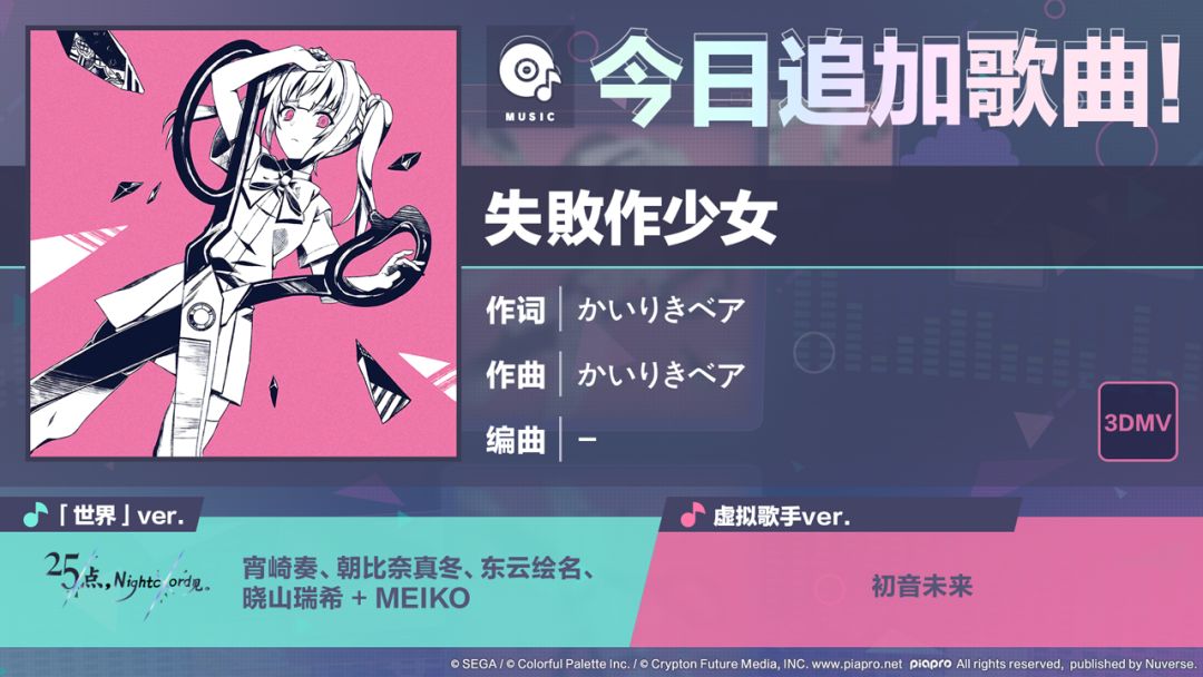 4/21 15:00起,追加歌曲《失敗作少女》!
