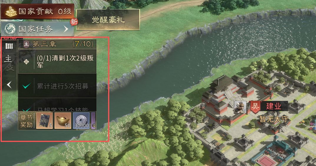 消耗木材和铁矿均可获得名望,累积名望可完成国家贡献任务,在贡献商店换取元宝、卡包、将魂等稀有道具。