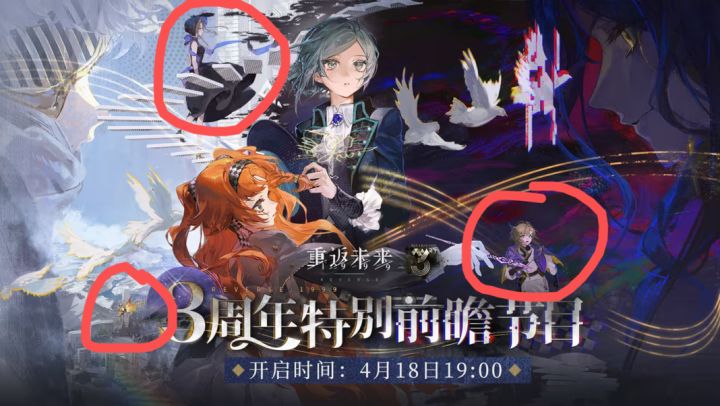 周年限定会被刻意糊掉,然后当期赠送和下半角色会漏出来,所以就猜这次是格蕾丝还是梅蕾尔是赠送角色,我猜格蕾丝,因为她她在中间位置站着