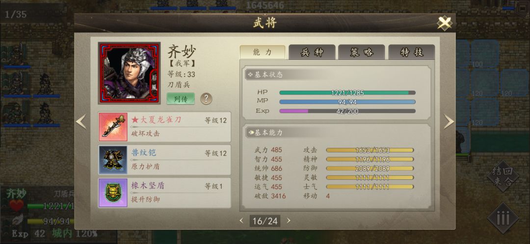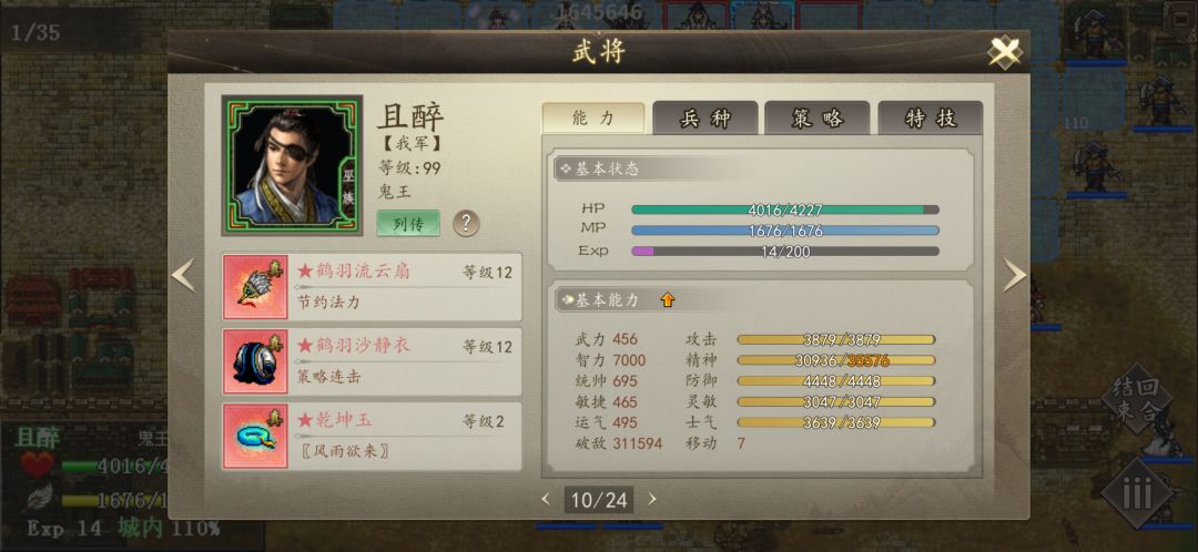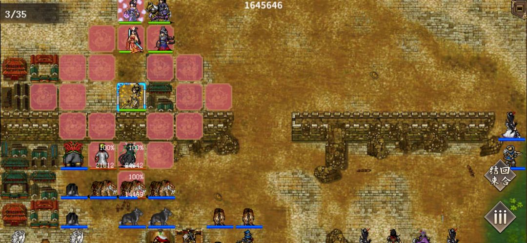 炼狱神陨!左下角因为培养度不够全部放弃,左上角,主力输出离柔,公主,且醉。夜辰,且啱回归辅助!右下角主要输出同叔。1阶职业怜和夜雪带霸王印回归同叔给同叔增加武力,第一回杀死火土域主,配合琳琅地震杀死下面的所有人,奇妙带1阶原力甲回血盾吸引儒剑士法师火力,默负责致盲!且醉地龙杀死门口4人,离柔公主杀左上角小兵!第2回合离柔清完左上角小兵守门口上1格。右下角奇妙吃青春丹守桥上上一格,吸引儒剑士法师攻击可以不死,同叔配合怜和夜雪之后2个回合杀4人组,4人组有锐,所以必须杀死!第3回合,最上角离柔用敏捷特技杀死2法师,解锁妨碍,后移到门口上一格,这里且啱需要1阶,猛虎有锐会秒杀离柔,除非离柔有唯我!且醉在最远距离岩崩完颜,因为精神不够还未死,夜辰在且醉上一格回归且醉,且醉最远距离落石完颜,因为解锁了妨碍,右下角,夜雪怜混乱2人,琳琅混乱4人,同叔尽量SL暴击杀1人,多人剩半血!第4回合右下角怜夜雪回归(夜雪回归技能是合战换取,怜和夜雪1阶是演武成就)基本清完4人组,最大威胁解除,全员需要在河下2格,因为枪兵是米字范围,免得被杀!左上角离柔没有唯我需要谨慎(本人没唯我)离柔2动杀一批人后且啱下去回归让离柔往上跑!需要慢慢杀,夜雪和怜全屏混乱2个玄术将,要不然谨慎也扛不住!第5回合夜雪怜尽可能混乱剩余玄术骑和18骑!第6回合右下角彻底解除危机,后面回合只需要慢慢往上清兵!第6回合夜辰回归离柔3次行动杀死水域主和耶律百战。第7回合且啱回归离柔,3次行动彻底清完耶律和所有18骑,最难阶段完全度过,接下来不在发截图(因为上限了),且醉去左上角靠近中间地龙杀死另外4个守门的,这时候离敬可以慢慢下去为触发单挑做准备!接下来可以完全不用搭理友军,回归离柔且醉到处清兵,公主辅助杀防御低点和近战克制99的,右下角回归同叔清人!夜雪怜可以不停的远程混乱有威胁的人!第16回合除左上右下中间全部清完!第19回合离柔清完左下角!第20回合杀死玄乔6女,离柔需要敏捷特技旋风斩!第22回合回归加速离敬去触发单挑单挑,离柔一动单挑耶律杰,以后杀死2人,到这里除了姬燕附近,敌军全部杀死!接下来需要先清理旁边的神机还有禁卫军,集中回归恢复状态离柔,离柔杀死风雷域主,且醉风龙姬燕,回归离柔,离柔旋风斩杀死望月妍!