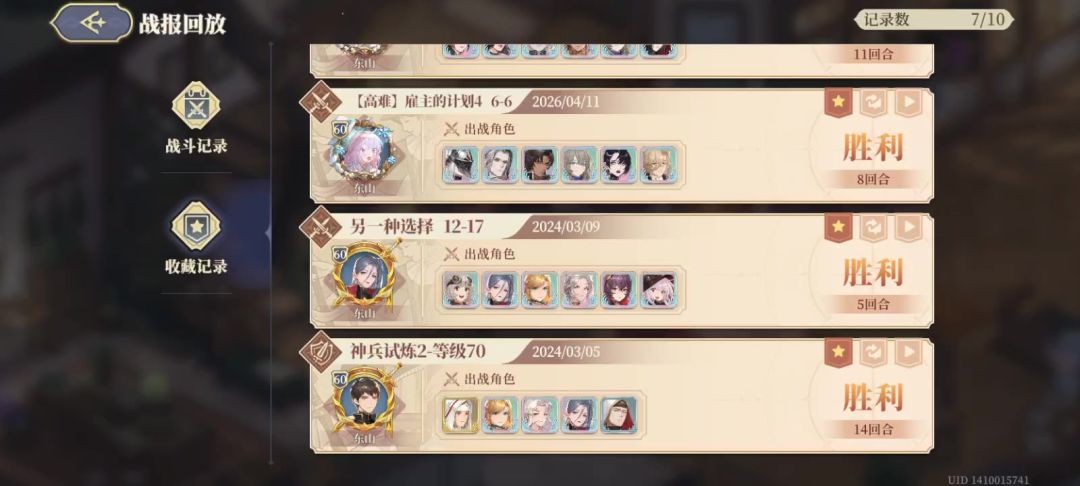 好了,最后就是7-7,这关的核心就是抢速度,让老登先出手等于失败,安娜(五星)+熊,一个主C+一个抗伤,小师妹解决会反弹伤害的剑客就行,小叶子的换位调速,小乌就是开场加速就行(虽然就一次作用,但不可以没有)。