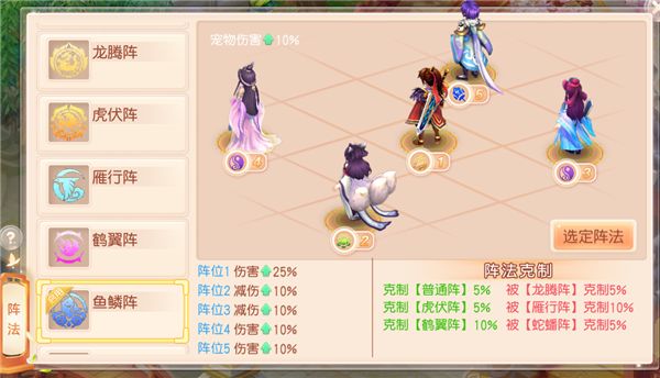 可以说是和鹤翼相似的阵法,把速度去掉改成减伤,有比鹤翼输出加成高的1号位,2.3号位减伤加成比较低,但是综合看来伤害属性提升还是十分可观的