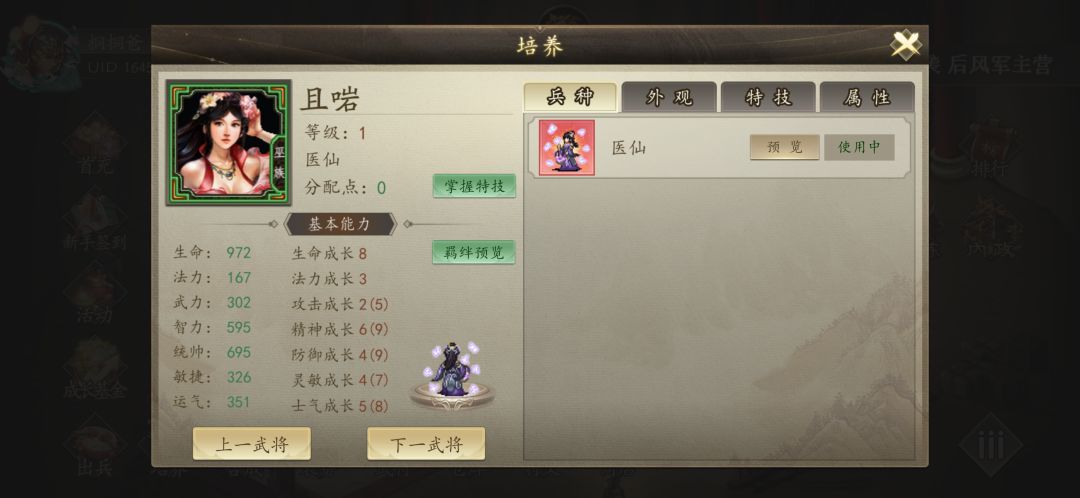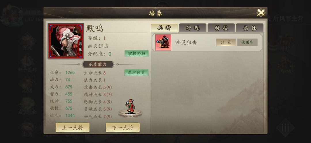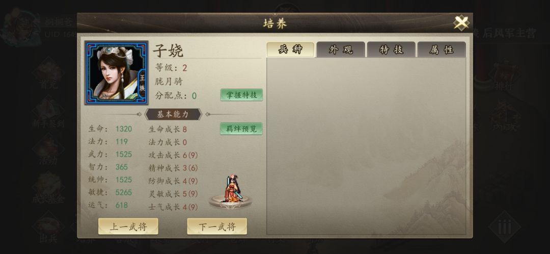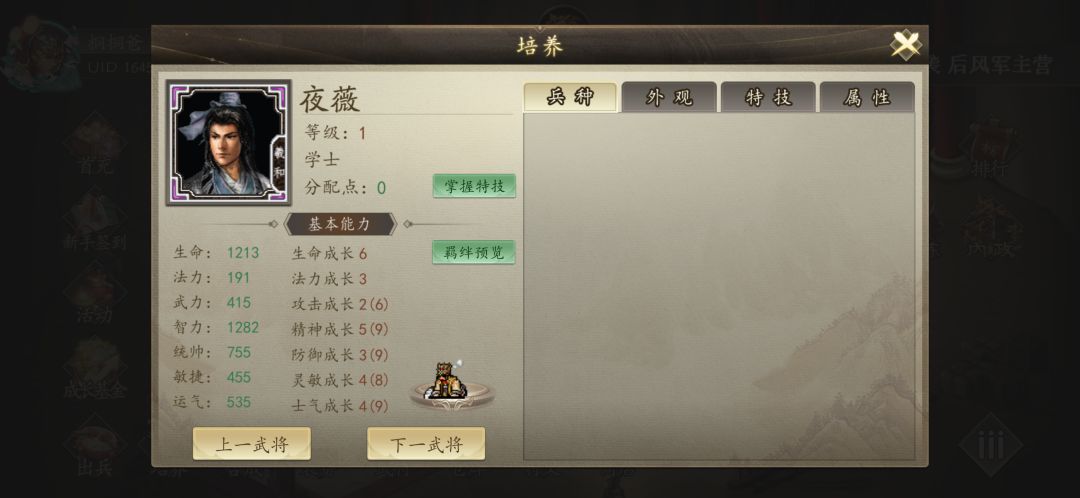 夜微和离嬌非常关键,有2关只能靠他俩还有默鸣,按我截图的夜微离嬌,外加霸王印一次只能打小兵几千血,十分艰难,所以一样最好能把武力,精神吃到1500,会更加轻松,因为没有太多特技印,所以只能配合默鸣进行慢慢磨!