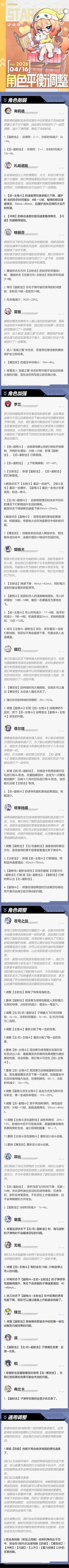 各位团长好,为了让团长们有更好的游戏体验,我们决定在4月16日游戏更新后对部分角色进行平衡调整,改动如下: