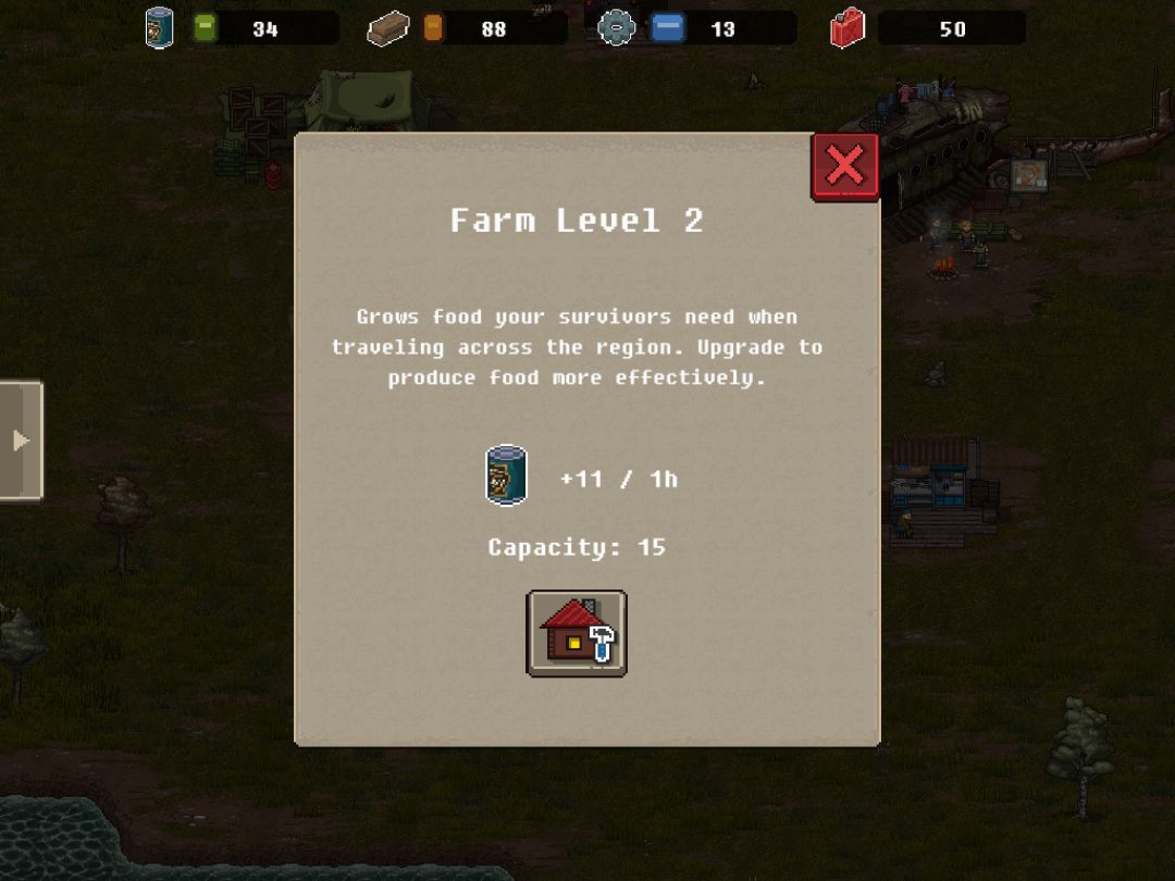 种植您的幸存者在该地区旅行时所需的食物。升级以更有效地生产粮食