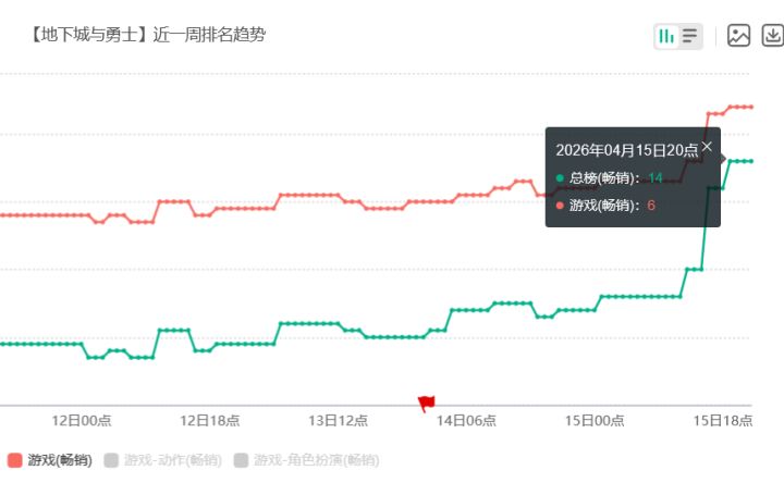 根据第三方平台显示的相关数据内容,游戏目前总榜畅销榜排名为第14名次,游戏畅销榜排名为第6名次。