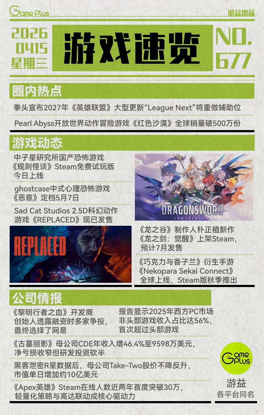 游戏行业值得关注的信息-0415