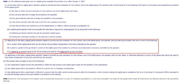 你氪了金、付出了心血的买断制游戏突然宣布因停服而消失,所有数据一夜清零,厂商连句像样的交代都没有,这种让无数玩家痛心疾首的遭遇,或许很快就要在加州、全世界成为历史了。