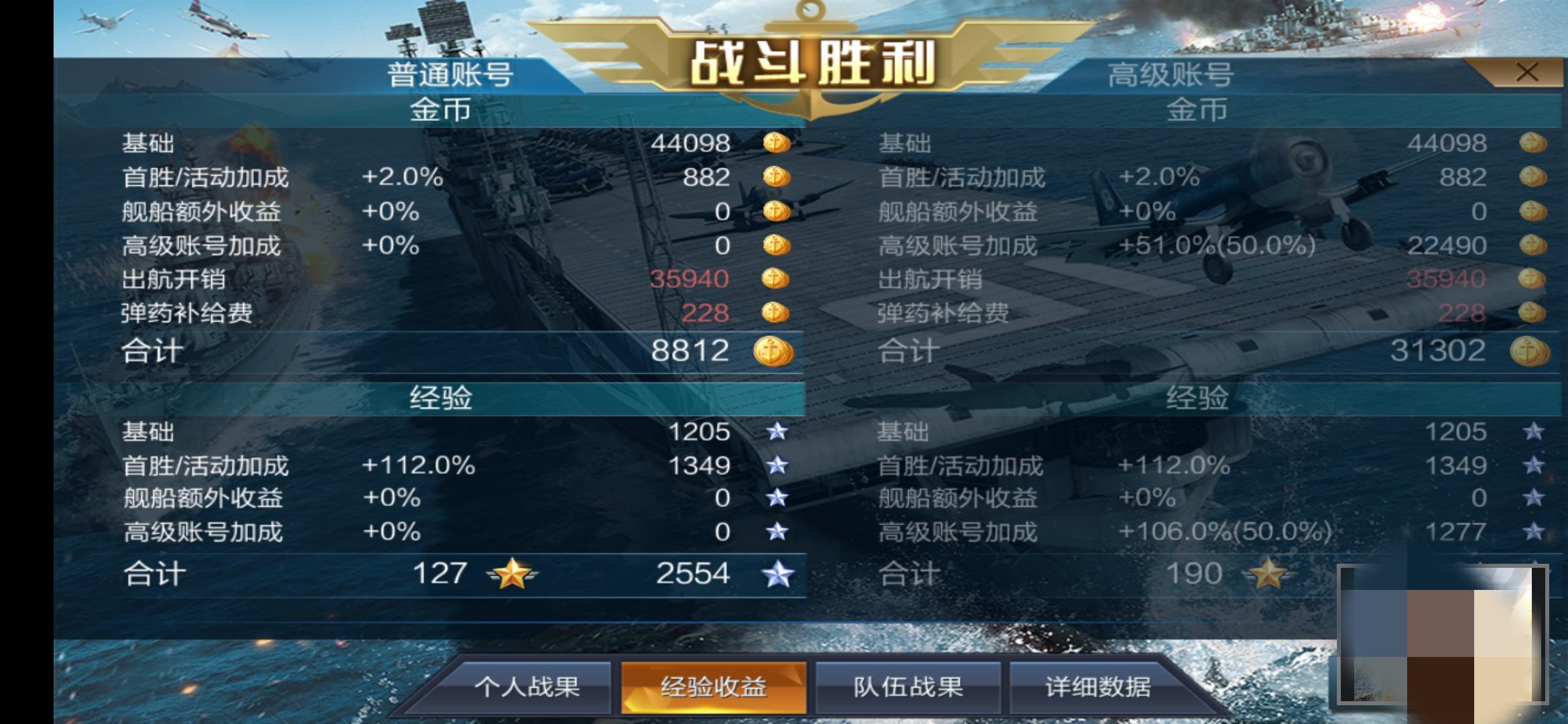 上下分别是两局对局,我喜滋滋退出来一看收益,当场就垮起个批脸。 第一组图里那个驱逐是我挂火出损管后一发雷把大半血的他给送走的,我也不知道为啥一发雷只打了3k.....