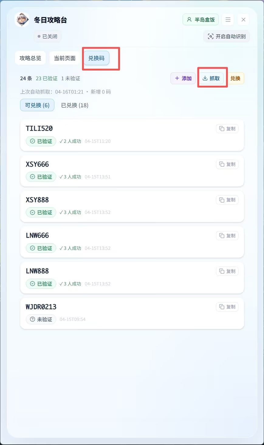 自动收集各大网站的兑换码,一键批量兑换,不用再手动一个个输入。实测已经白嫖了不少资源,体验很爽。