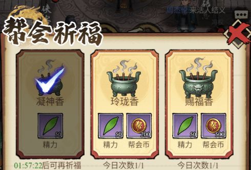 除门派委托外,每日可进入【江湖-帮会】,参与门派交流玩法。