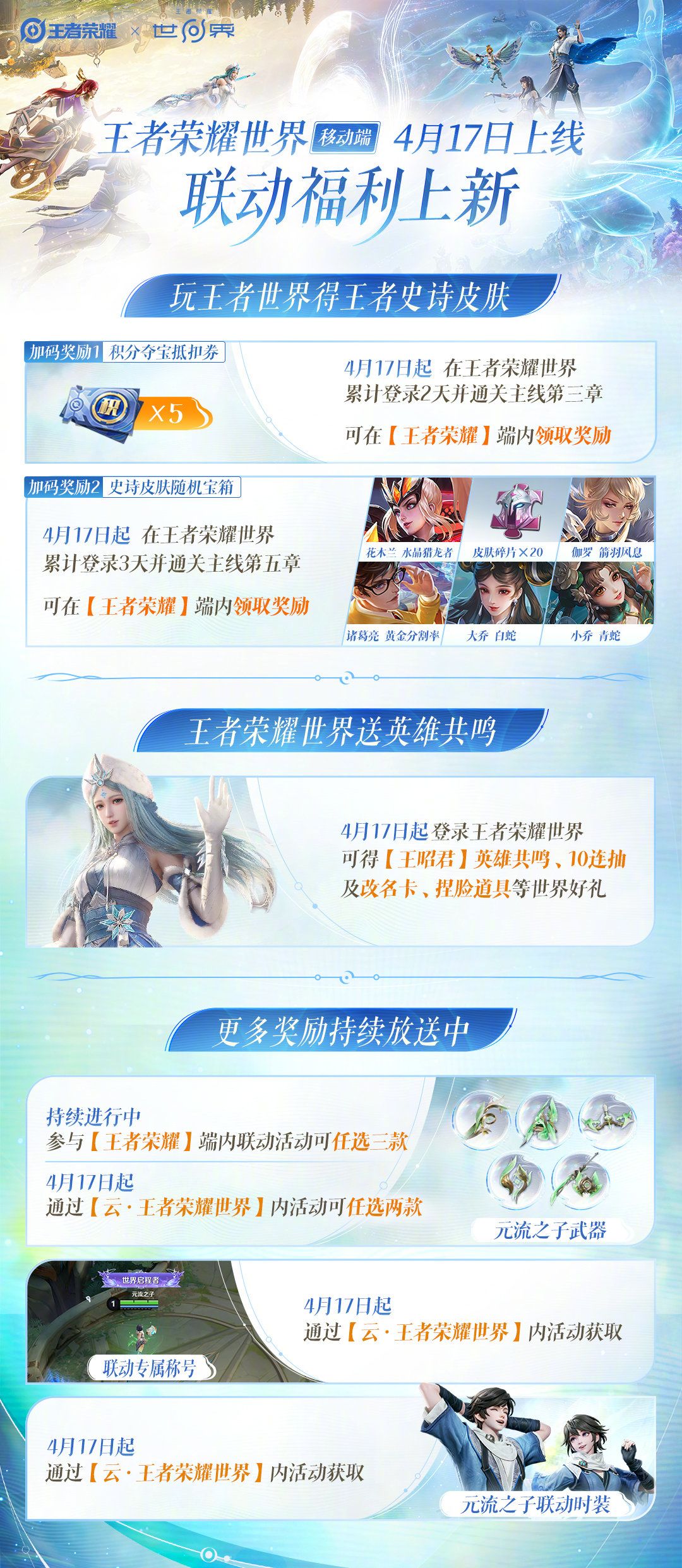 《王者荣耀世界》移动端4/17正式上线 联动福利拉满 免费领皮肤