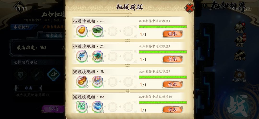 九如相界,这个活动前30关的常规关卡不难打,就是里面的小怪跟boss是随机的有点磨人,新玩家的话,多刷几遍就行