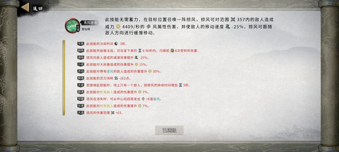 绝技选择掠风术是因为掠风术会变成金花兰幽的绝技,兰幽DLC技能是脱手技,所以手感上跟剑系绝技一样。如果没有DLC直接用飞沙术,飞沙是风系最猛的技能,但是需要一直按着对于我来说并不友好。
