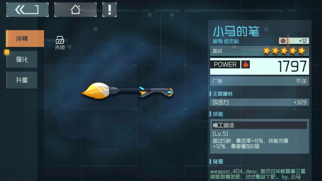 首先:新手神器,马笔,最高48%暴击率加72%技能伤害,前期可以代替很多武器,不一一举例。