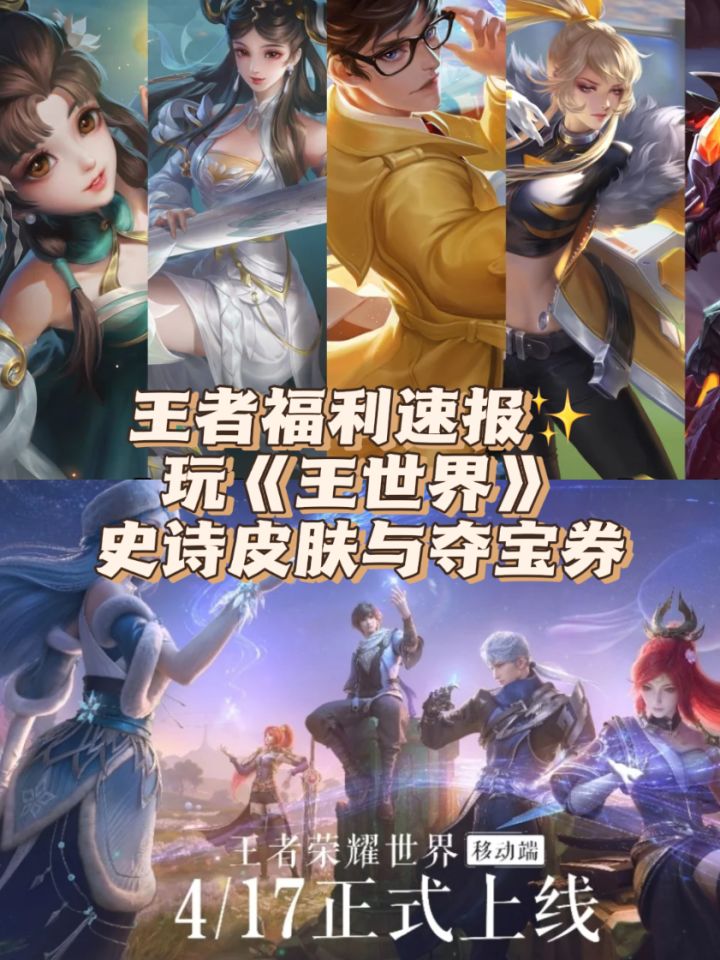 4 月 17 日,《王者荣耀世界》移动端正式上线,联动福利重磅来袭!登录《王者荣耀世界》并推进主线,即可在《王者荣耀》内领取5 张积分夺宝券与随机史诗皮肤宝箱,皮肤已拥有则自动兑换20 个皮肤碎片。#今天游戏圈发生了啥 #王者荣耀 #王者荣耀世界