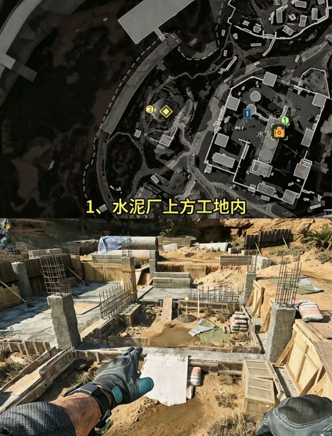 1. 水泥厂上方工地内直奔水泥厂北侧的工地区域,这里的混凝土结构与钢筋搭建处是藏宝堆的刷新点。