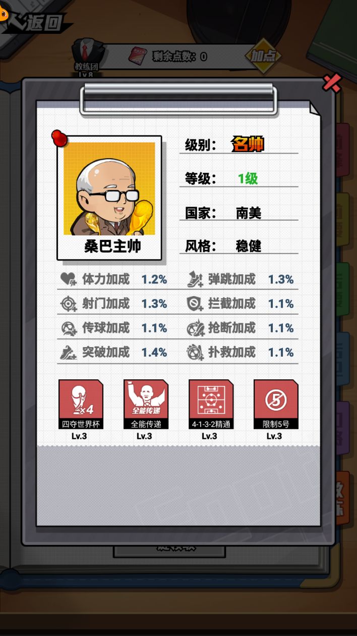 优先传球,增加双攻击18%,老韩可以下课了。之前老韩必须在主教练位置的最大原因是他的技能2,优先传球给有大招的前锋。以此激活3前锋的输出能力。有了扎加洛后。老韩可以退休了。