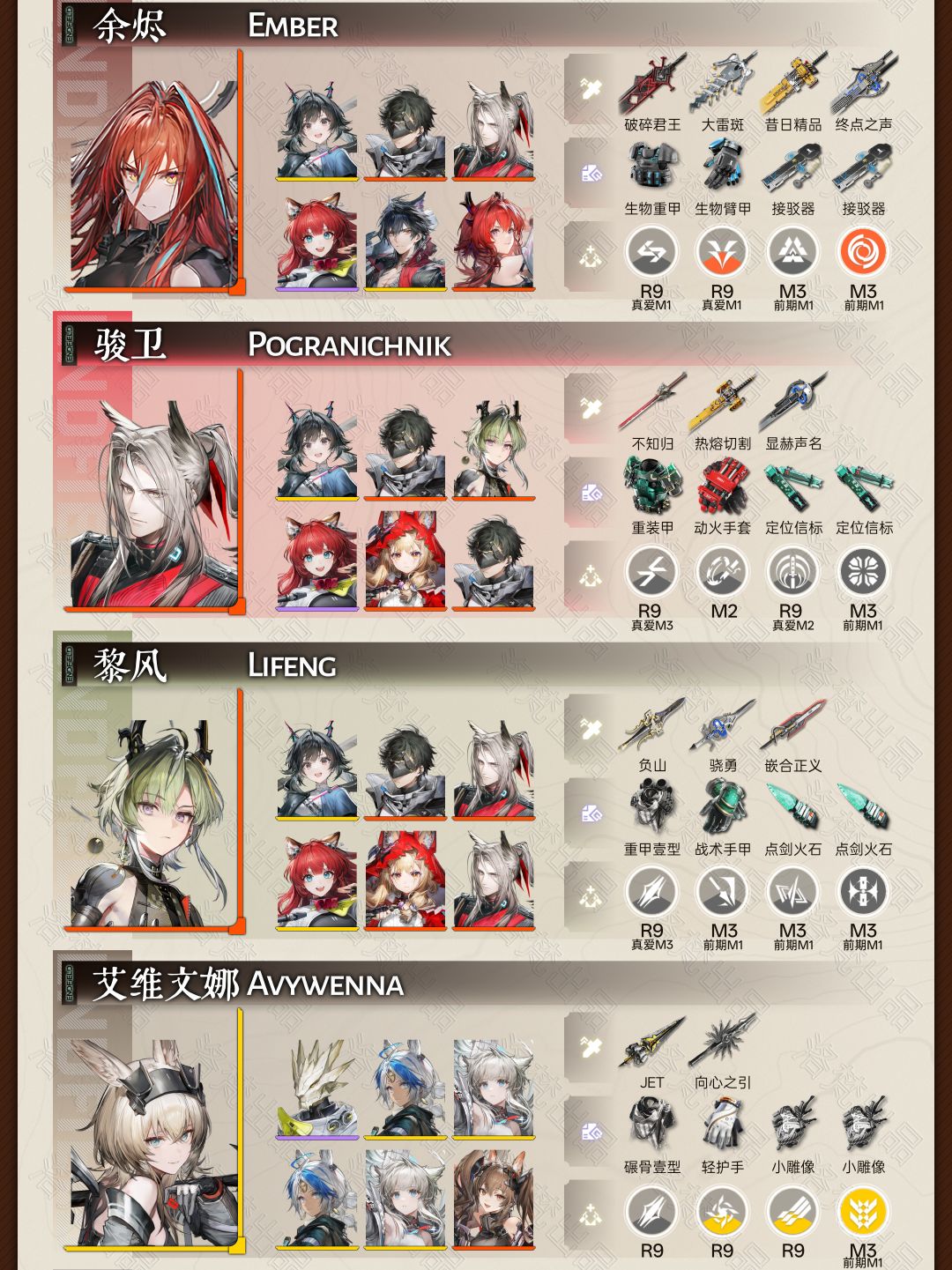 我们大幅度重制并更新了全干员武器装备推荐,希望能帮助到各位。