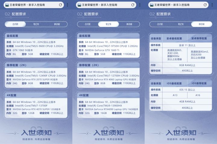 王者荣耀世界官方配置要求