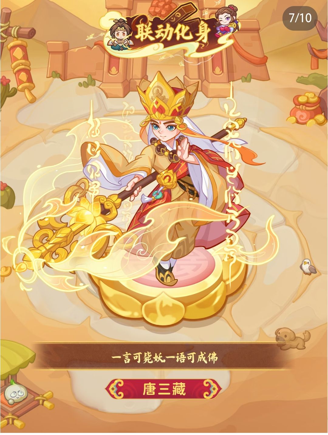 化身·唐三藏:电系输出核心,经文弹幕与佛掌合击造成高额范围伤害,配合专属宝物可禁锢敌人并施加麻痹。