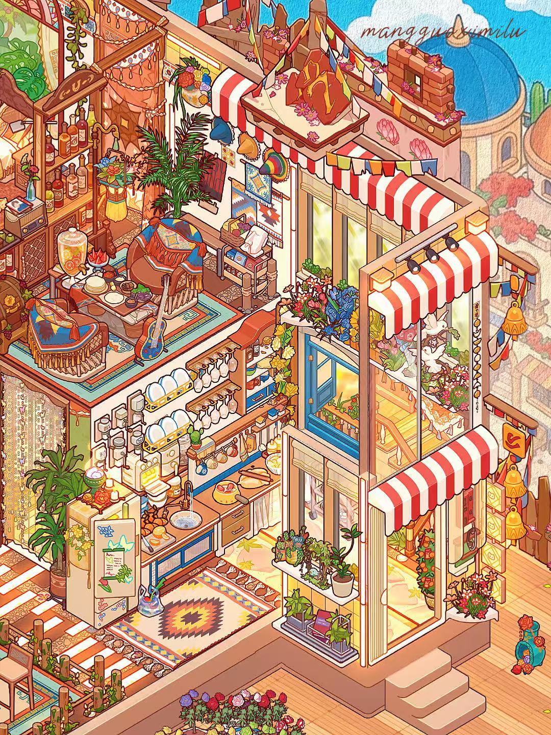 🏠《微场景|波西米亚风落日玫瑰彩色厨房装修🌹》📍-方块头