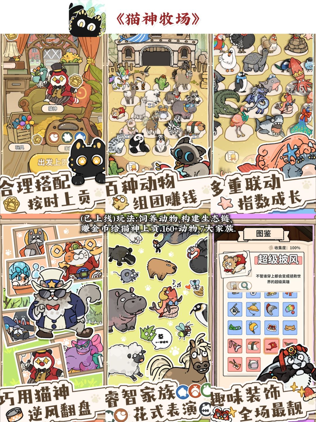 3.猫神牧场(已上线):肉鸽经营新玩法,繁育百种动物搭建生态链,为猫神献礼,轻松又有策略趣味。