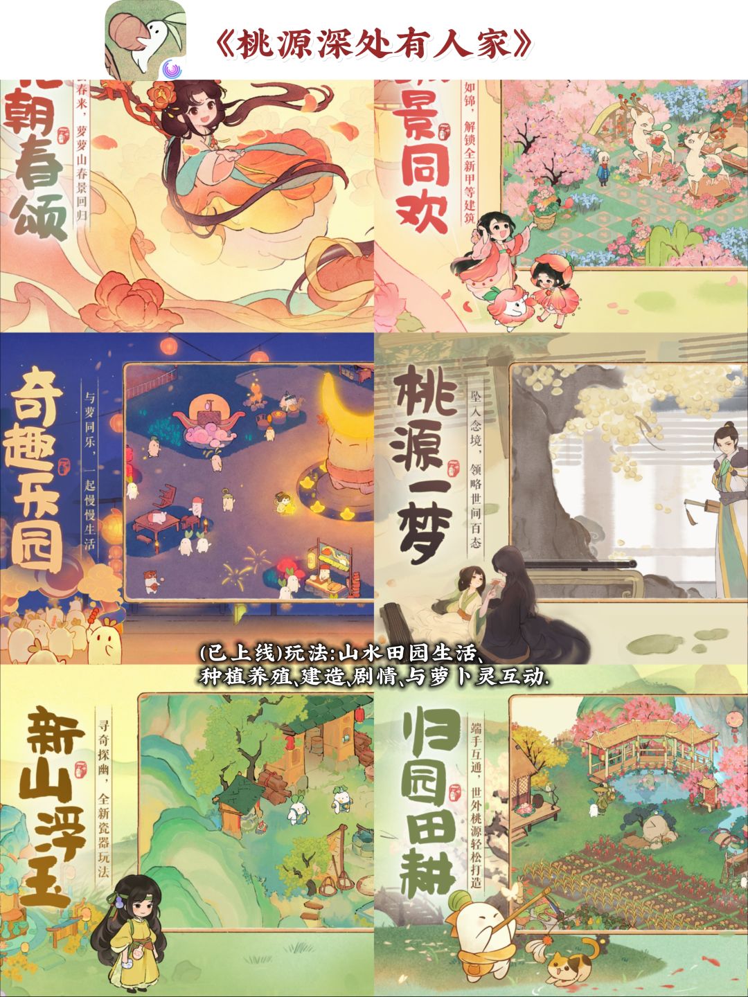 9.桃源深处有人家(已上线):国风田园经营,耕织建造、邂逅萝卜灵,归隐山水间感受诗意烟火。#一名卫兵走进了一间酒馆 #模拟经营 #游戏推荐 #游戏安利 #以闪亮之名 #刀剑乱舞online #小生活悠闲小镇物语 #动物餐厅 #粒粒的小人国 #桃源深处有人家
