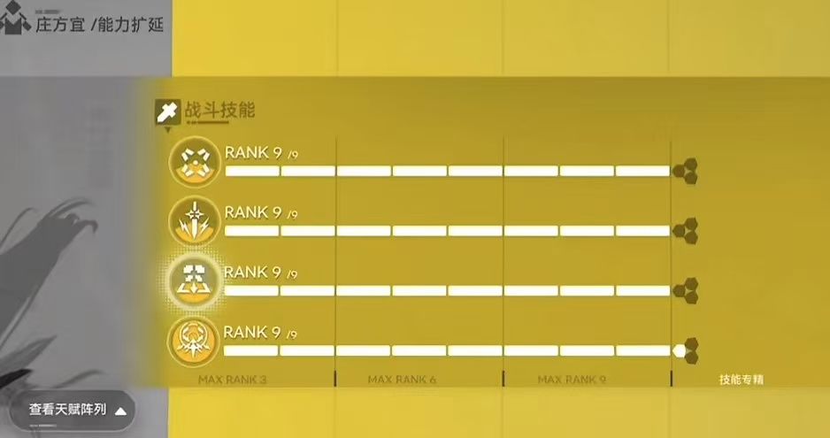 庄姐为现版本超级大核,操作简单的同时开启大招后全程霸体,主要就是靠战技生成的青霆剑打输出所以技能加点方面优先战技!其次才是大招、连携技和普攻,有条件的拉满即可,无须多言