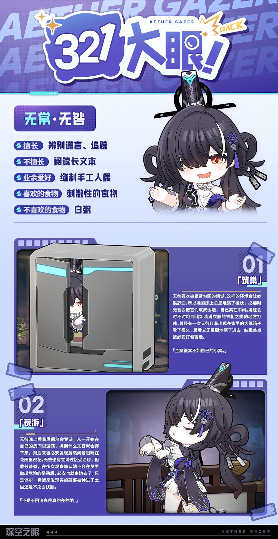 作为《深空之眼》中极具人气的双生修正者之一,无常·无咎与妹妹必安一同追随后土,驻守囚云山肩负看守地牢、引导冥途的重任,在战斗中凭借独特的协律作战机制与飒爽的战斗姿态,收获了众多管理员的喜爱。而此次主题内容,跳出了紧张刺激的战斗场景,聚焦生活感满满的瞬间,通过光影定格的方式,挖掘角色性格里的细腻与柔软,让角色形象变得更加立体丰满,进一步拉近了角色与玩家之间的情感距离。